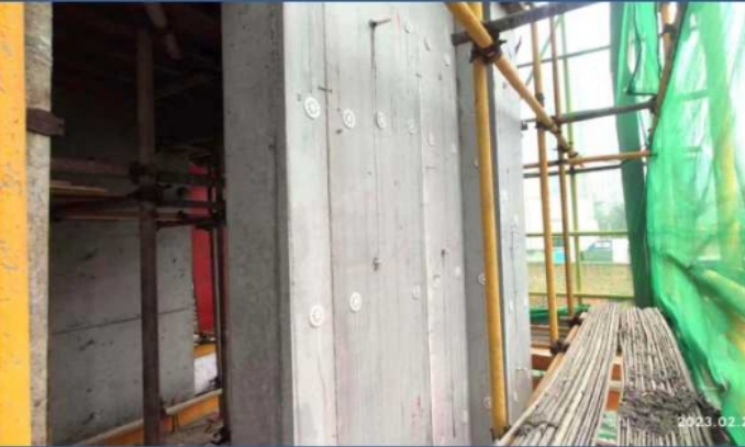 现浇混凝土主体结构施工时,有保温的一侧用ASG无机复合保温模板替代木模或铝模,将保温模板与主体结构浇筑在一起,形成无空腔复合保温墙体。